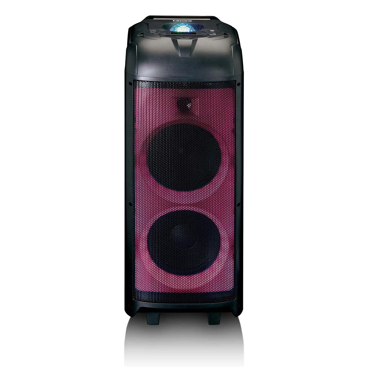 Der Lenco PA-260 ist ein Partylautsprecher mit Diskokugel und auf der Vorderseite. Der leistungsstarke Klasse D-Verstärker mit X-Treiber Modus hat eine Ausgangsleistung von 150 Watt RMS. Bestehend aus 1 Hochtöner, einem 8"-Tieftöner und einem 8"-Subwoofer. Verbinden Sie Ihr Smartphone oder Tablet über Bluetooth und spielen Sie die Musik direkt von Ihrer Lieblings-App ab.